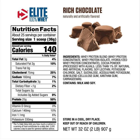 Dymatize Elite 100% Whey Protein Powder Rich Chocolate 2lb.
