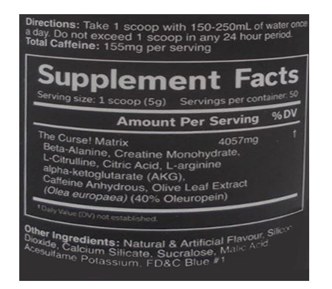 | Extreme Mental Focus and Energy - The Curse! is a blend of stimulants that delivers extreme mental focus, pure physical energy, strength and stamina that surges through your mind, allowing you to unleash your true potential. | |